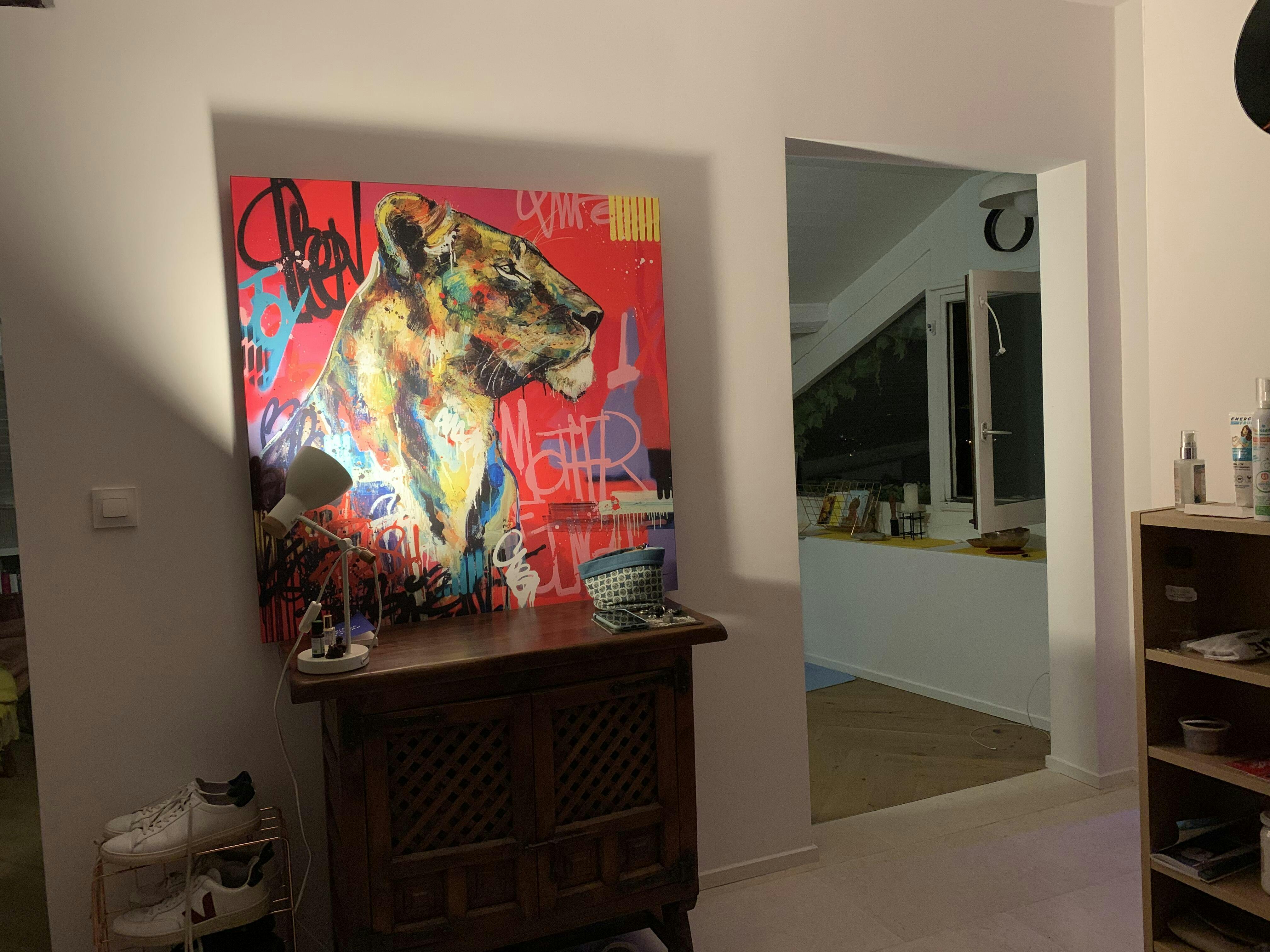 Milles mercis a vous Gregory pour votre commande et soutien à Vincent Richeux ! On confirme que cette œuvre est tout simplement une explosion de couleurs notamment en 100x100cm! Excellent choix de votre part.